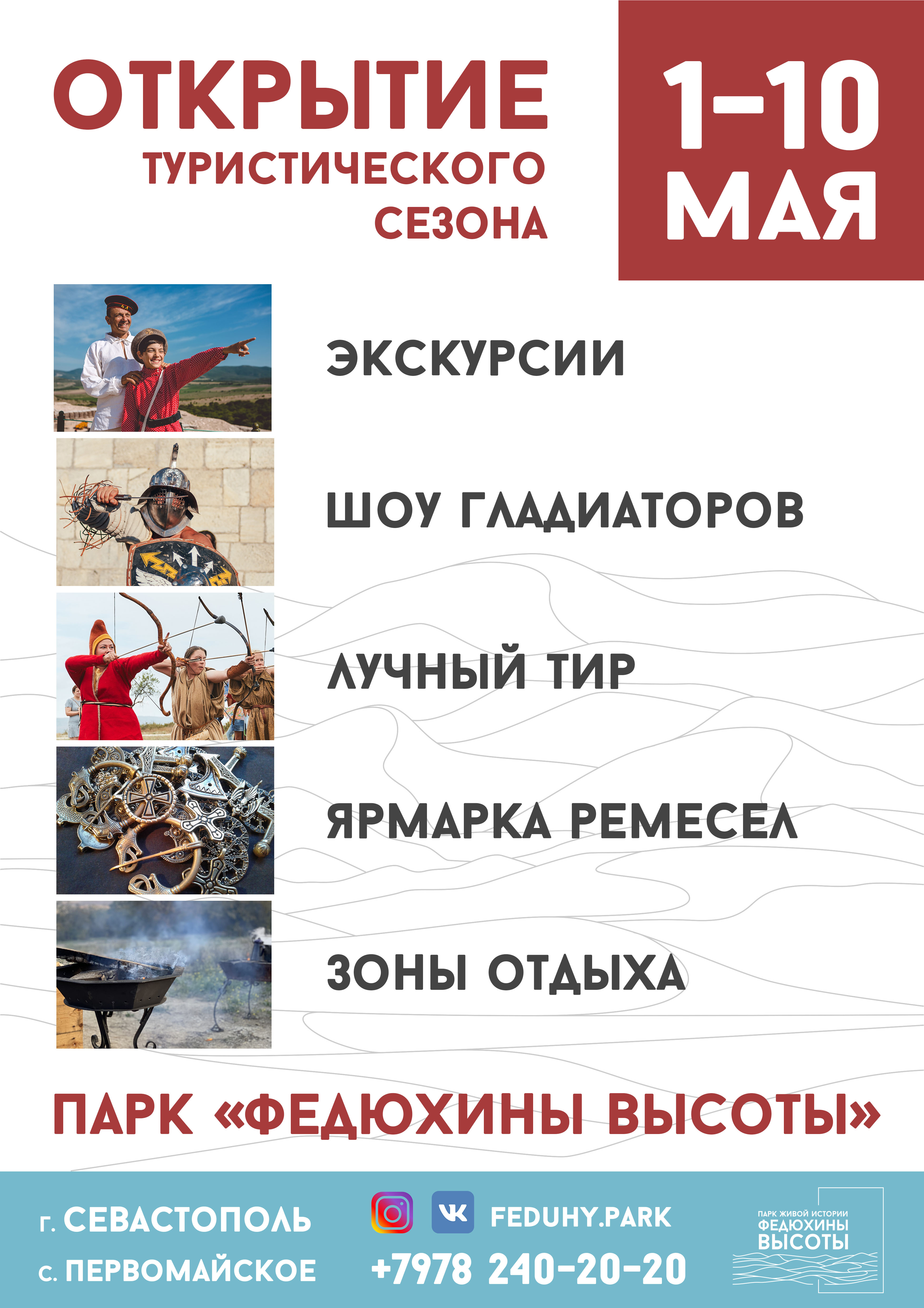 Парк живой истории "Федюхины высоты" - новый масштабный туристический объект в Крыму, под Севастополем. Здесь воссозданы три музейных комплекса - римская крепость I-III веков н.э., генуэзская усадьба XV века, позиции Крымской войны. Парк работает ежедневно, проводятся экскурсии, живые уроки для детей, военно-исторические фестивали и шоу, корпоративные туры и программы исторического погружения.
