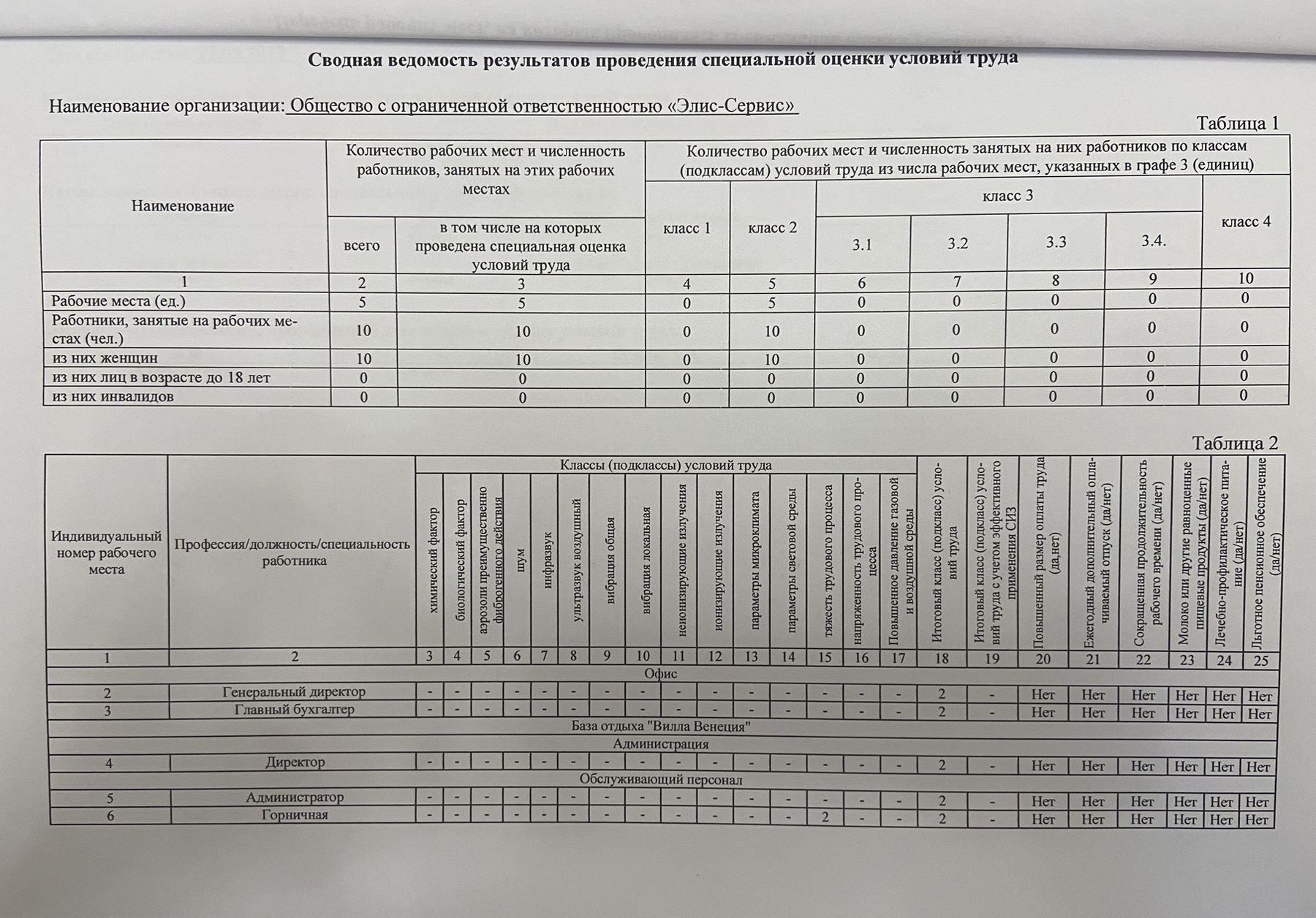 Сводная ведомость результатов проведения специальной оценки условий труда 2023